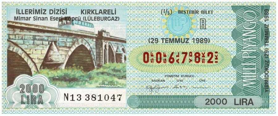 29 Temmuz 1989 Beştebir Bilet PYB3108