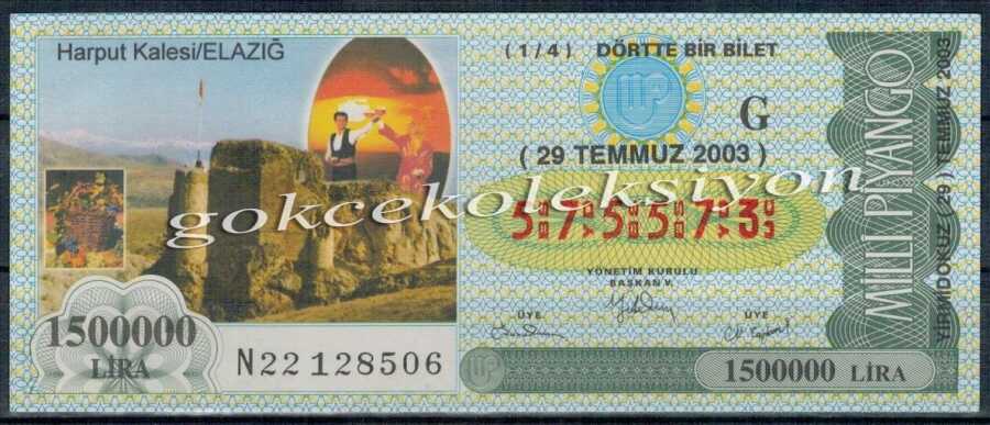 29 Temmuz 2003 Çeyrek Bilet PYB2477