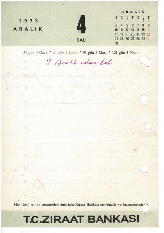 3 - 4 Aralık 1973 Ziraat Bankası Masa Takvimi Takvim Yaprağı EFM1262