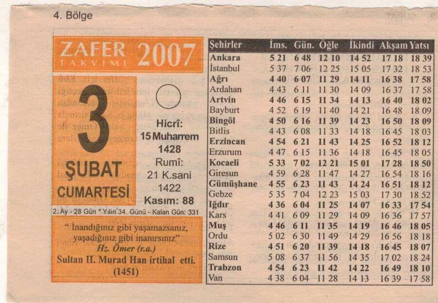 3 Şubat 2007 Takvim Yaprağı EFM(N)5522