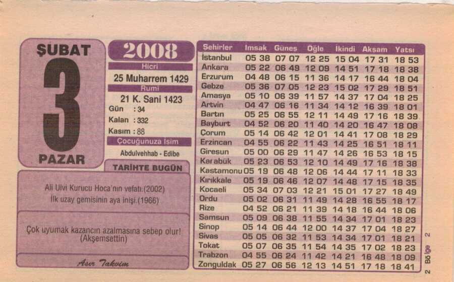 3 Şubat 2008 Takvim Yaprağı EFM(N)5579