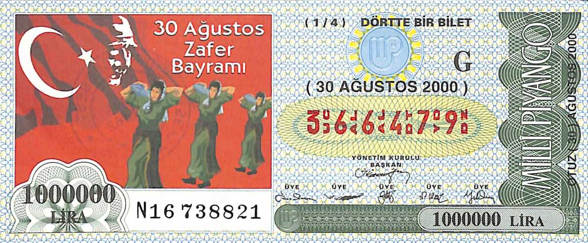 30 Ağustos 2000 Piyango Bileti Dörtte Bir Bilet PYB6565