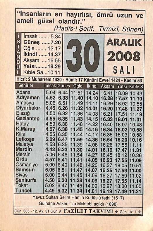 30 Aralık 2008 Takvim Yaprağı - Doğum Günü Hediyesi EFMN15304