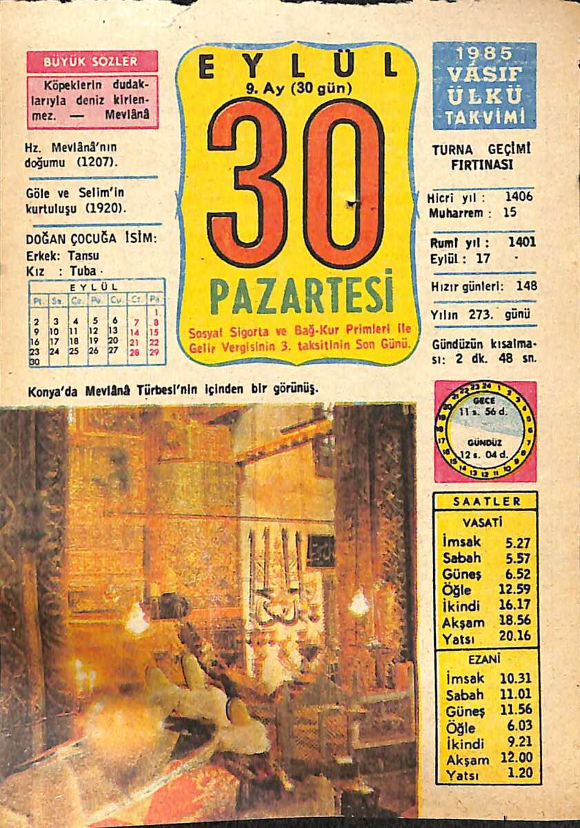 30 Eylül 1985 Takvim Yaprağı - Doğum Günü Hediyesi EFMN14024