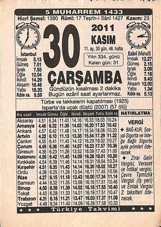 30 Kasım 2011 Takvim Yaprağı - Doğum Günü Hediyesi EFMN15259
