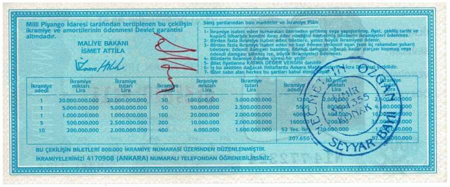 30 Nisan 1995 Çeyrek Bilet PYB2988