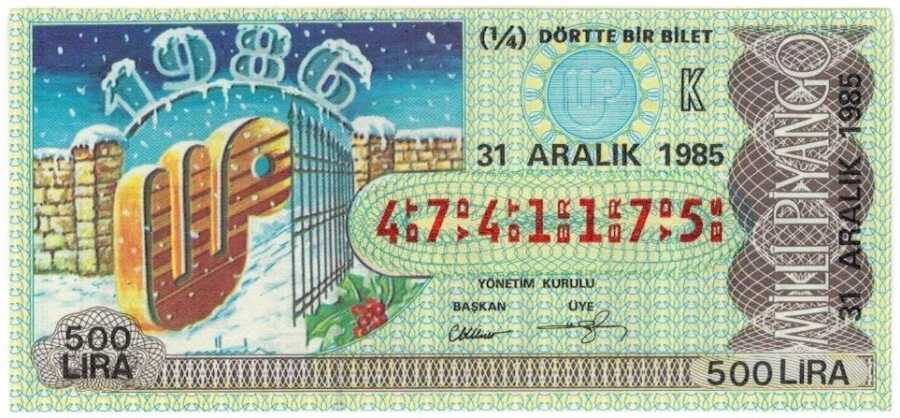 31 Aralık 1985 Piyango Bileti Çeyrek Bilet PYB3342