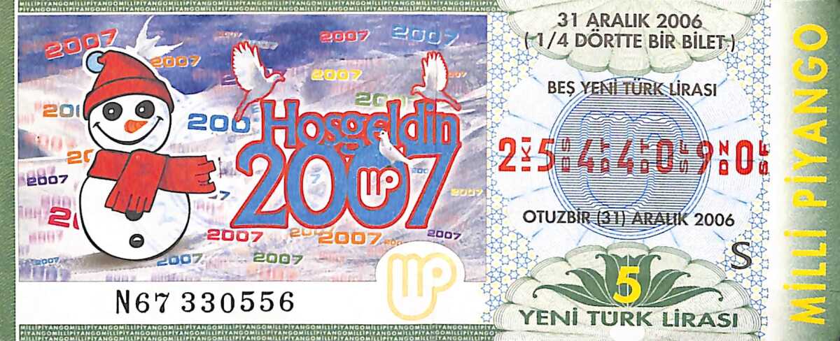 31 Aralık 2006 Piyango Bileti Dörtte Bir Bilet PYB6639