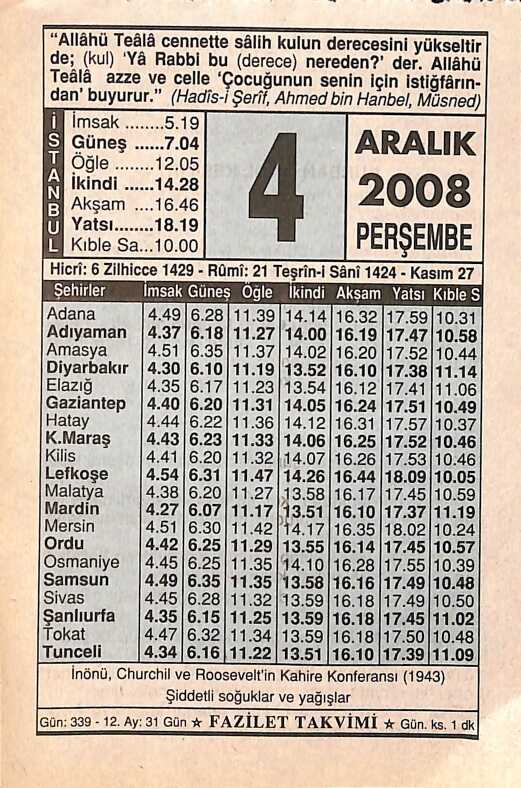 4 Aralık 2008 Takvim Yaprağı - Doğum Günü Hediyesi EFMN15329