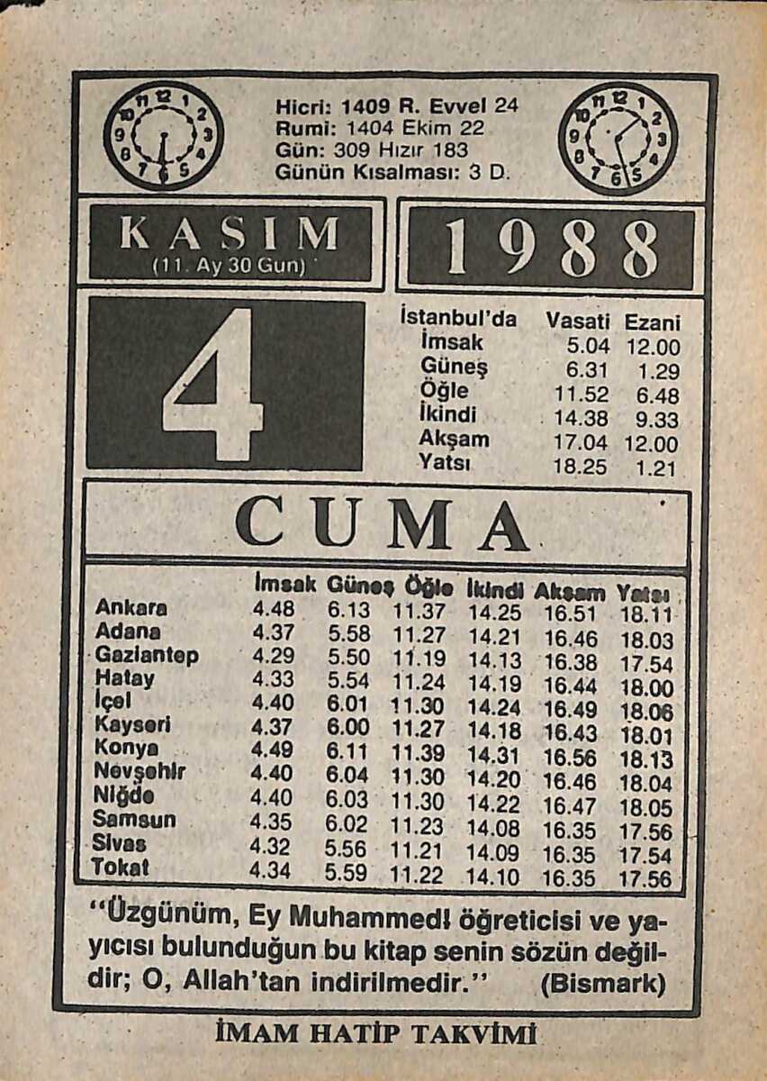 4 Kasım 1988 Takvim Yaprağı - Doğum Günü Hediyesi EFMN14626