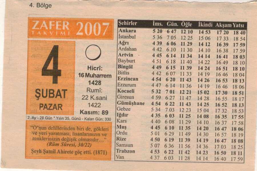4 Şubat 2007 Takvim Yaprağı EFM(N)5523