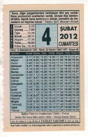 4 Şubat 2012 Takvim Yaprağı EFM(N)1845