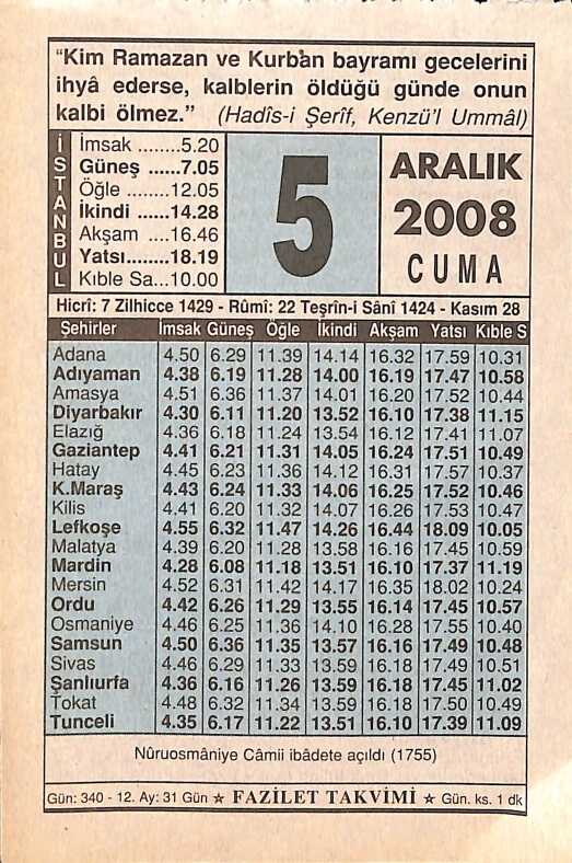 5 Aralık 2008 Takvim Yaprağı - Doğum Günü Hediyesi EFMN15328