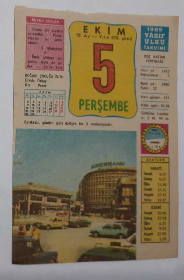 5 Ekim 1989 Takvim Yaprağı - Doğum Günü Hediyesi EFM(N)6591