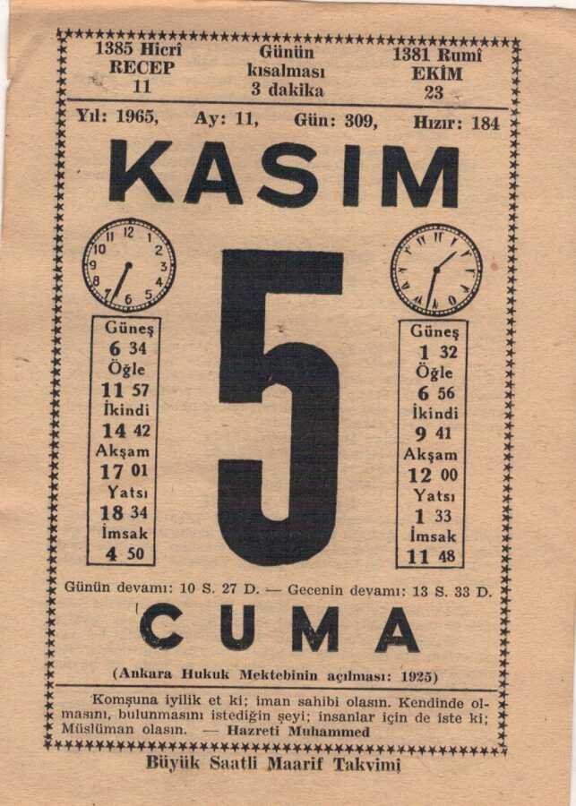 5 Kasım 1965 Takvim Yaprağı EFM(N)3656