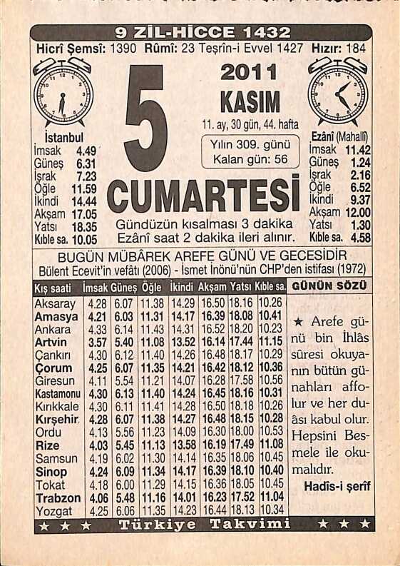 5 Kasım 2011 Takvim Yaprağı - Doğum Günü Hediyesi EFMN15284