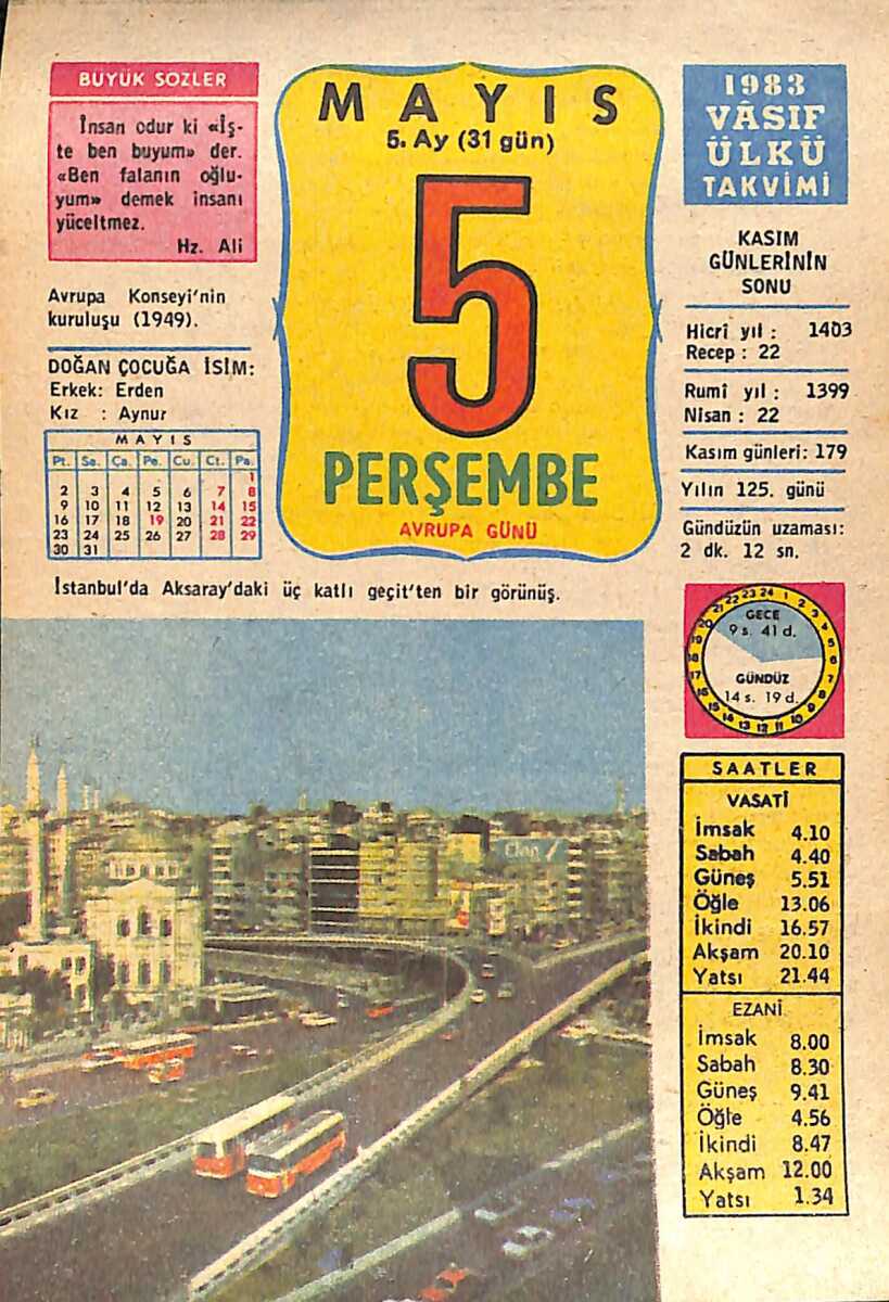 5 Mayıs 1983 Takvim Yaprağı - Doğum Günü Hediyesi EFMN15127
