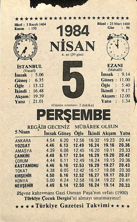 5 Nisan 1984 Takvim Yaprağı - Doğum Günü Hediyesi EFM(N)11216