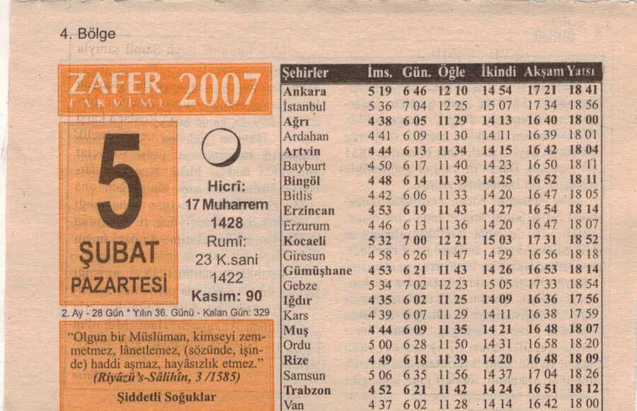 5 Şubat 2007 Takvim Yaprağı EFM(N)5524
