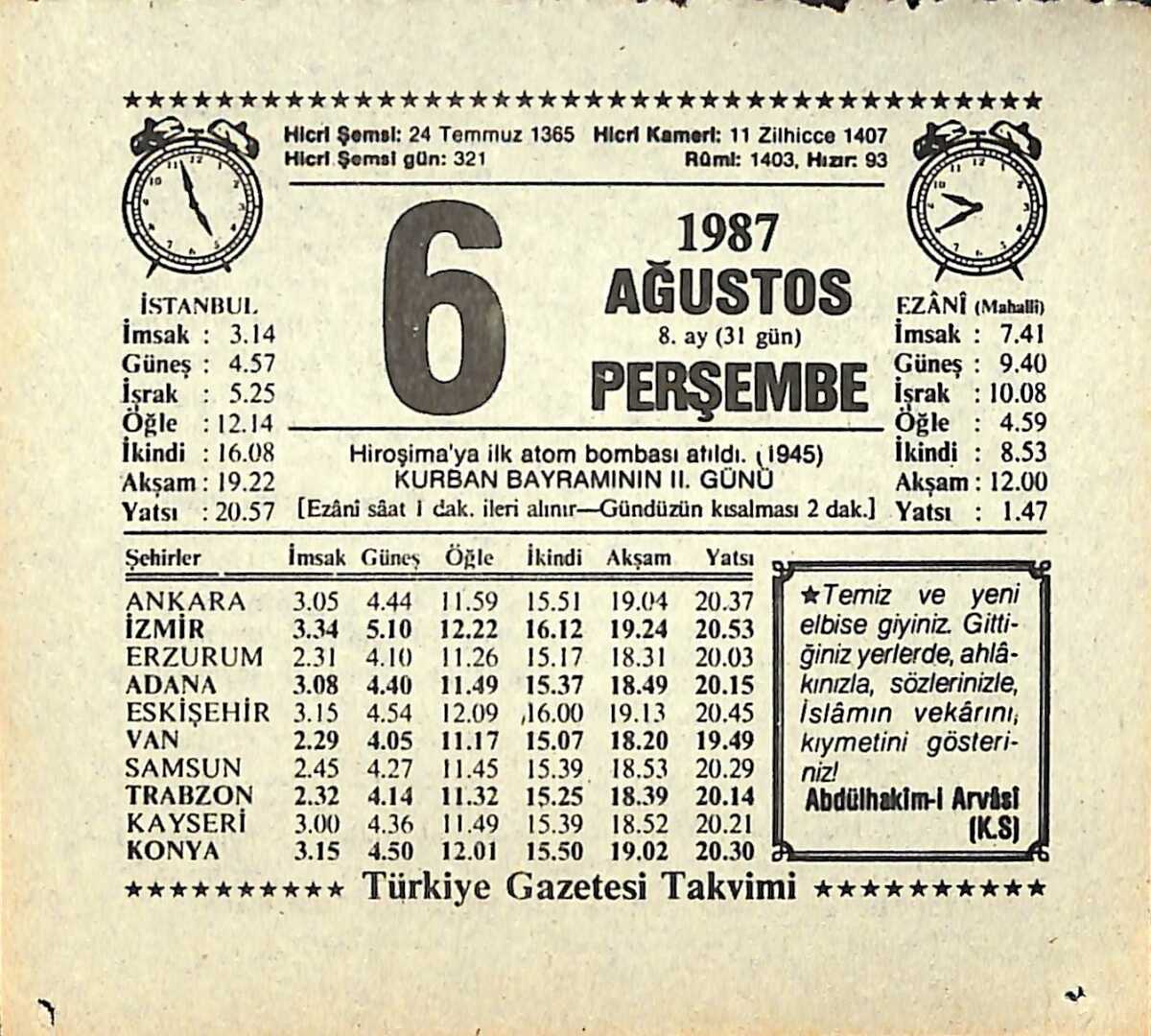 6 Ağustos 1987 Takvim Yaprağı - Doğum Günü Hediyesi EFMN13849