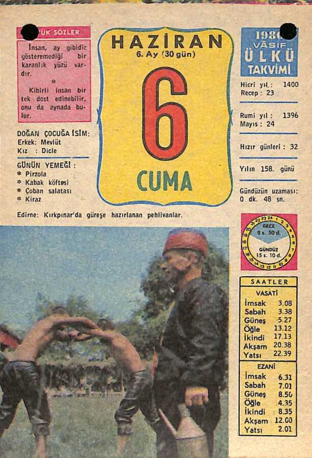 6 Haziran 1980 Takvim Yaprağı - Doğum Günü Hediyesi EFM(N)9123