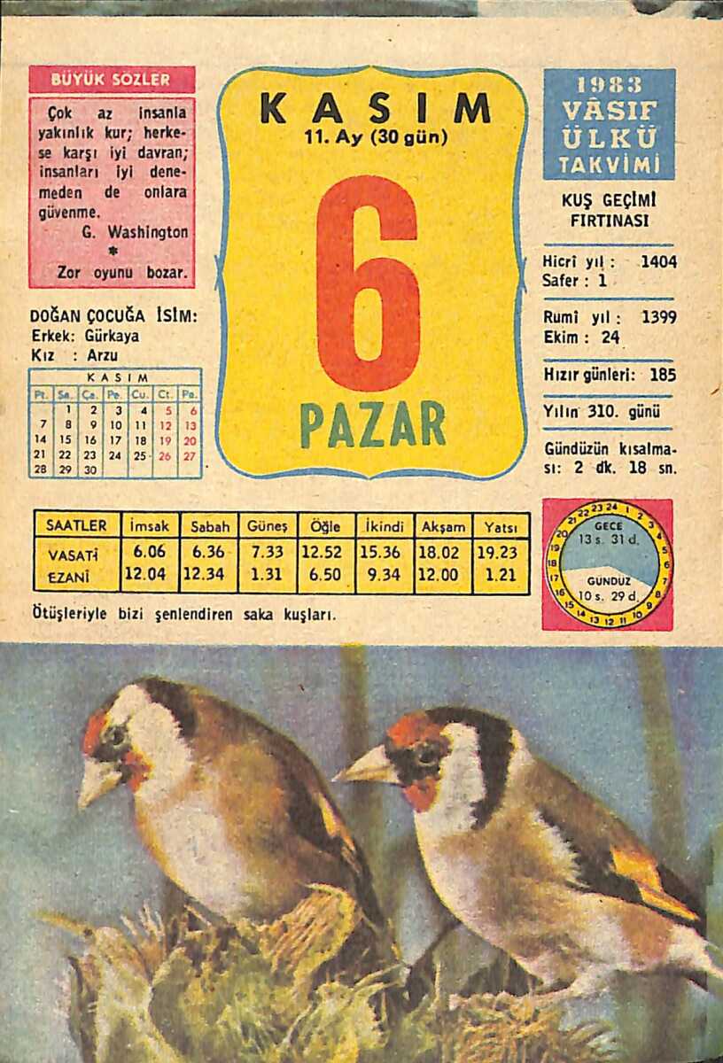 6 Kasım 1983 Takvim Yaprağı - Doğum Günü Hediyesi EFMN14715