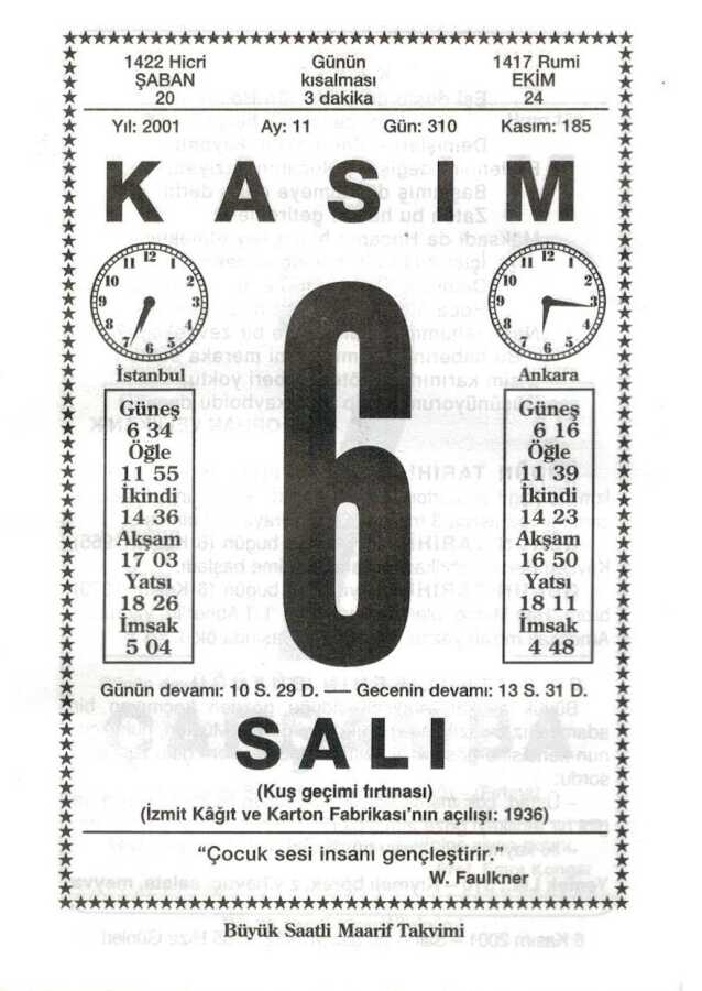6 Kasım 2001 Takvim Yaprağı Doğum Günü Hediyesi EFM(N)3990