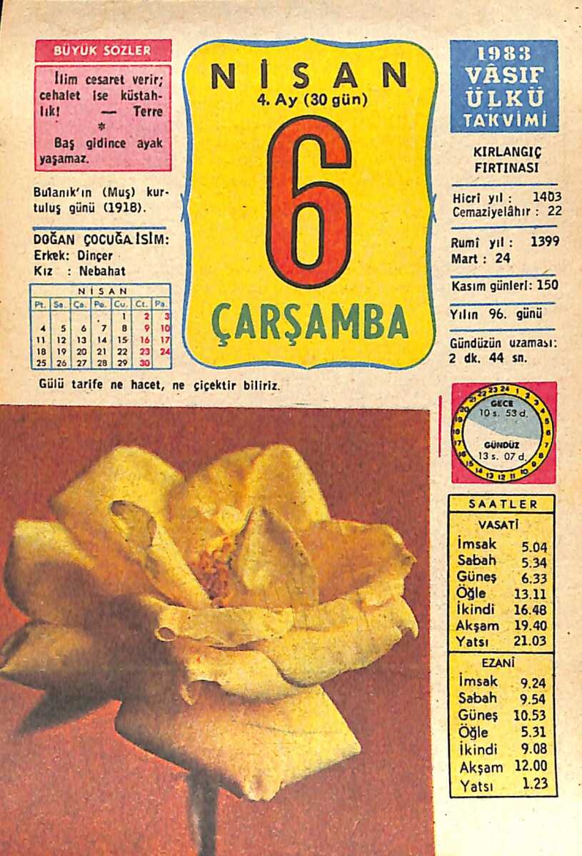 6 Nisan 1983 Takvim Yaprağı - Doğum Günü Hediyesi EFMN15154