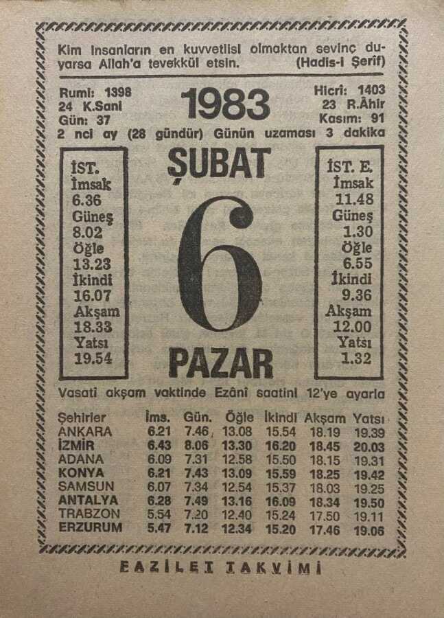 6 Şubat 1983 Takvim Yaprağı - Doğum Günü Hediyesi EFM(N)7803