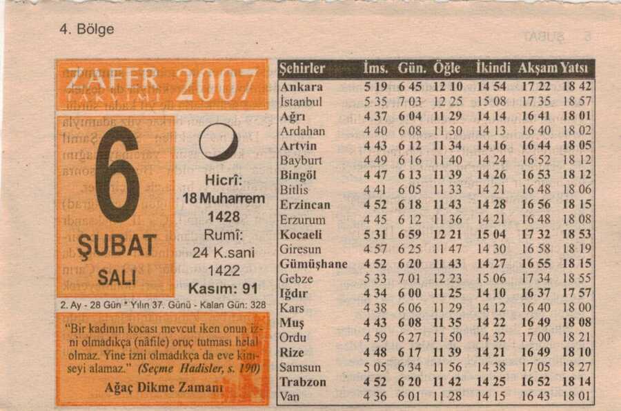 6 Şubat 2007 Takvim Yaprağı EFM(N)5525