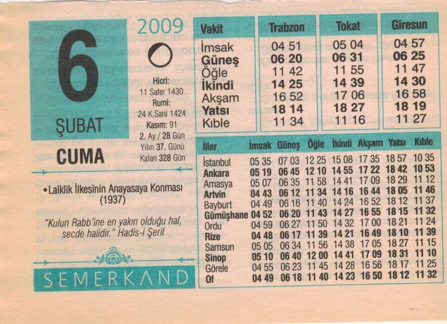 6 Şubat 2009 Takvim Yaprağı EFM(N)5611