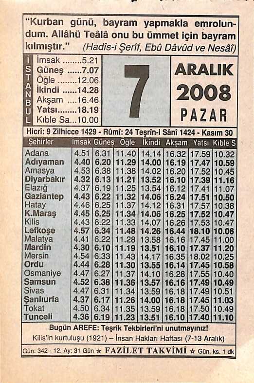 7 Aralık 2008 Takvim Yaprağı - Doğum Günü Hediyesi EFMN16326
