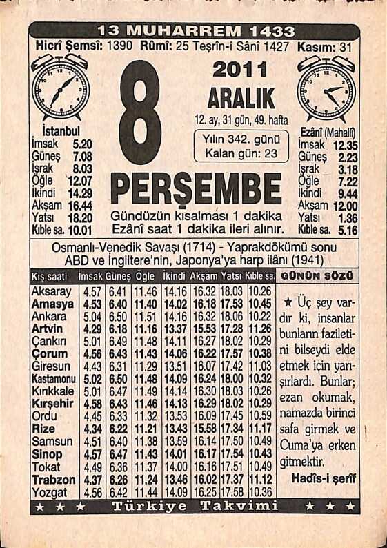 8 Aralık 2011 Takvim Yaprağı - Doğum Günü Hediyesi EFMN15251