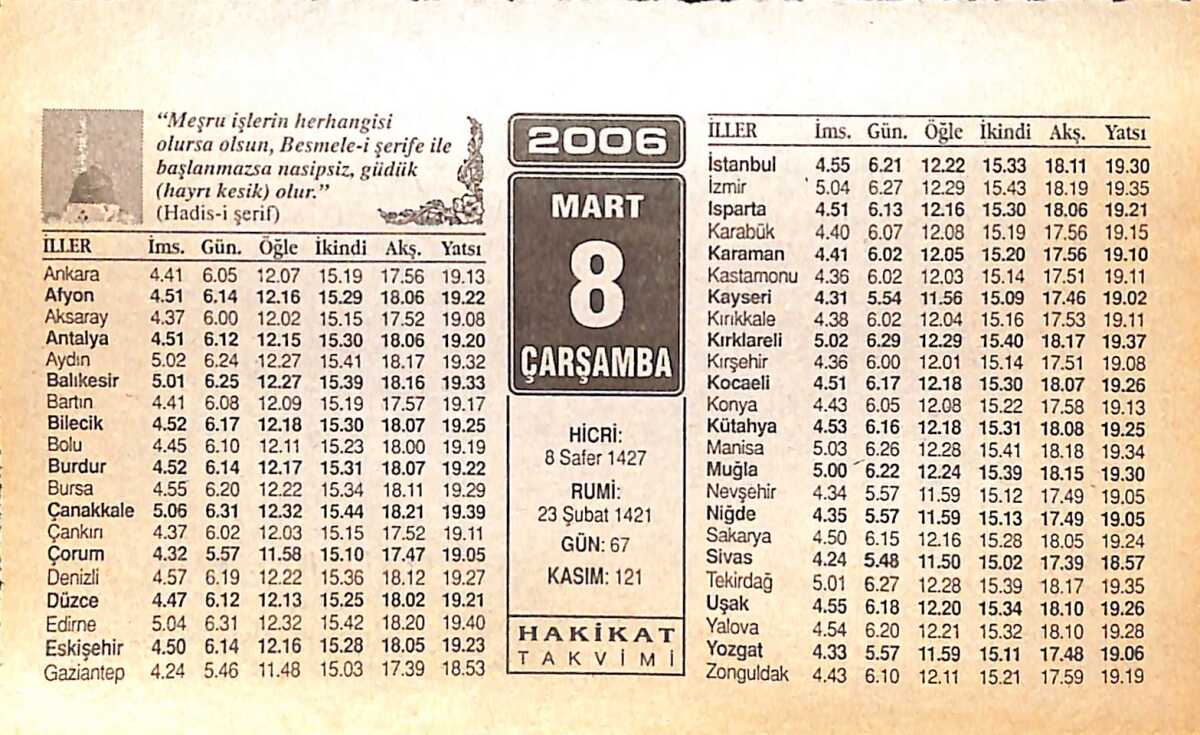 8 Mart 2006 Takvim Yaprağı - Doğum Günü Hediyesi EFMN13224