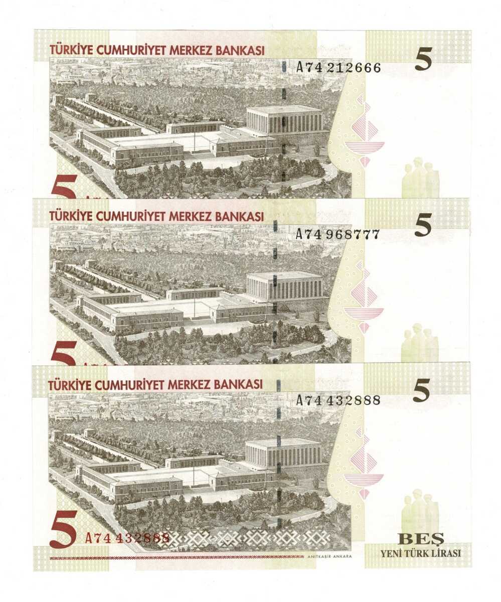 8.Emisyon 1.Tertip 5 Yeni Türk Lirası (5 YTL) Seri A74...666/777/888 - ÇİL TCK10210