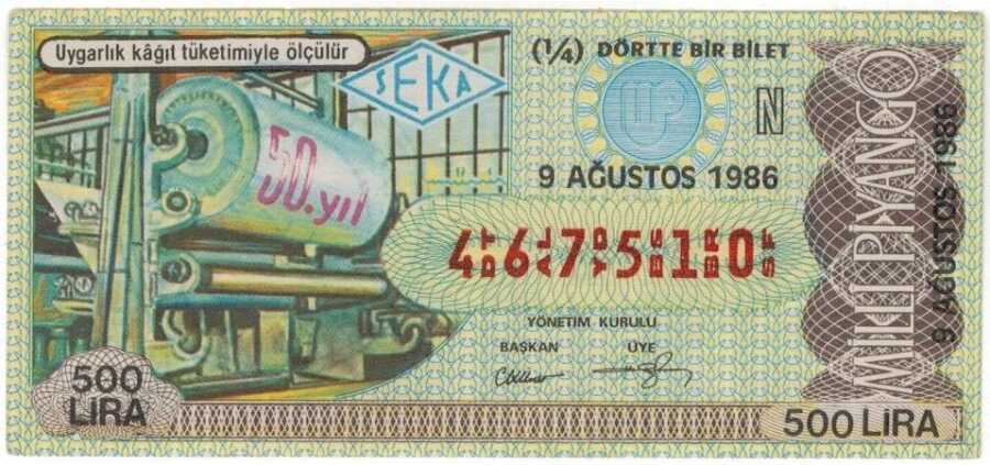 9 Ağustos 1986 Çeyrek Bilet PYB3283