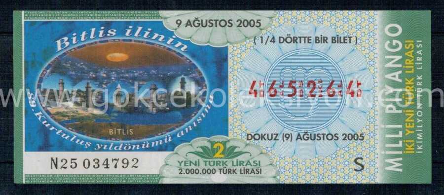 9 Ağustos 2005 Çeyrek Bilet PYB1210