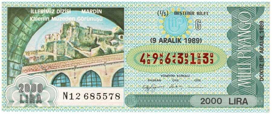 9 Aralık 1989 Beştebir Bilet PYB3099