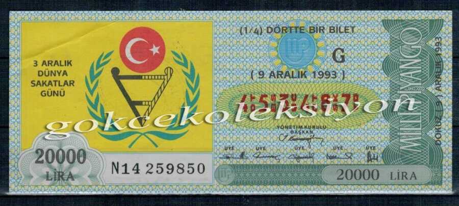 9 Aralık 1993 Çeyrek Bilet PYB2042