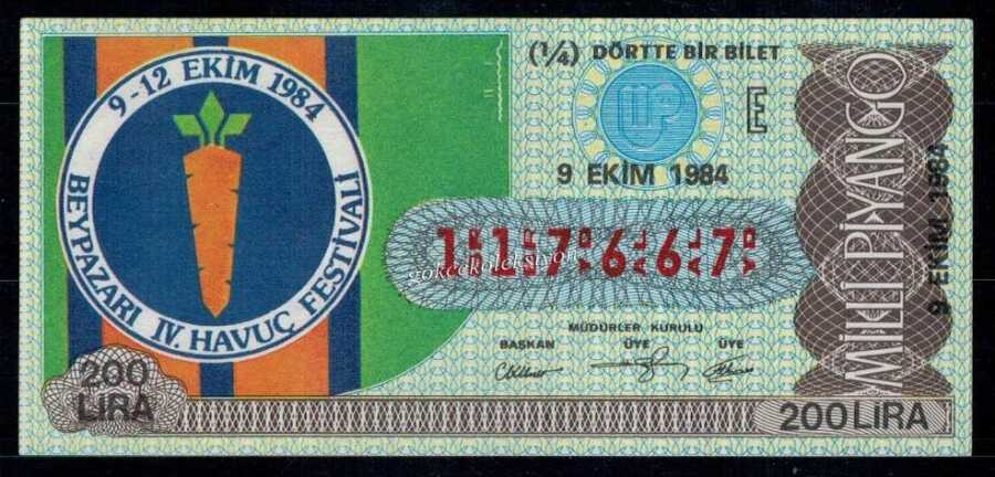 9 Ekim 1984 Piyango Bileti Çeyrek Bilet PYB2959