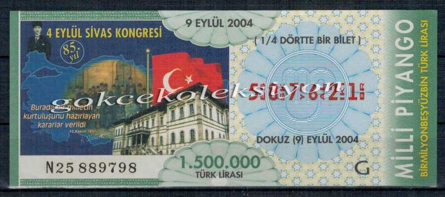 9 Eylül 2004 Çeyrek Bilet PYB2159