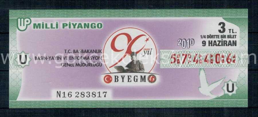 9 Haziran 2010 Çeyrek Bilet PYB1370