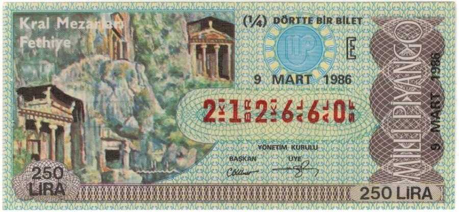 9 Mart 1986 Piyango Bileti Çeyrek Bilet PYB3317