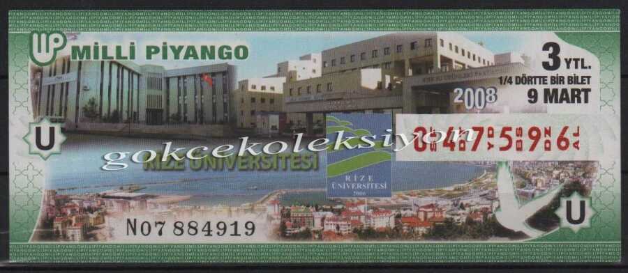 9 Mart 2008 Çeyrek Bilet PYB2396