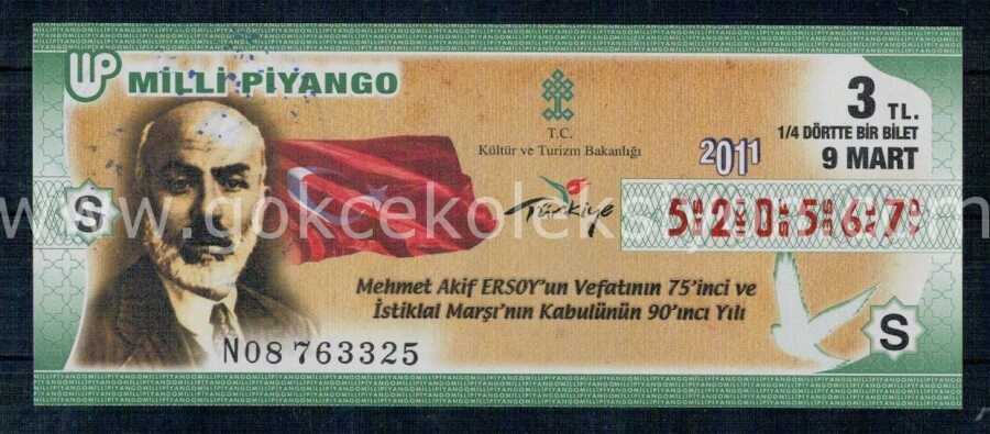 9 Mart 2011 Çeyrek Bilet PYB1244