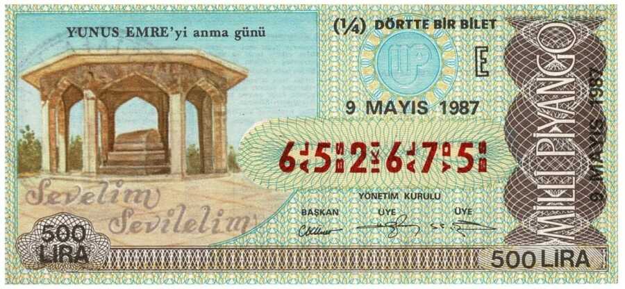 9 Mayıs 1987 Piyango Bileti Çeyrek Bilet - Yunus Emre Haftası PYB3244