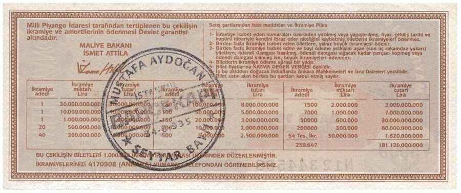 9 Mayıs 1995 Çeyrek Bilet PYB2987