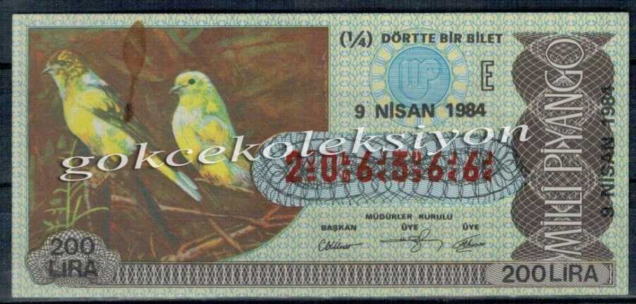 9 Nisan 1984 Çeyrek Bilet PYB1595