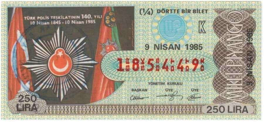 9 Nisan 1985 Piyango Bileti Çeyrek Bilet PYB3390