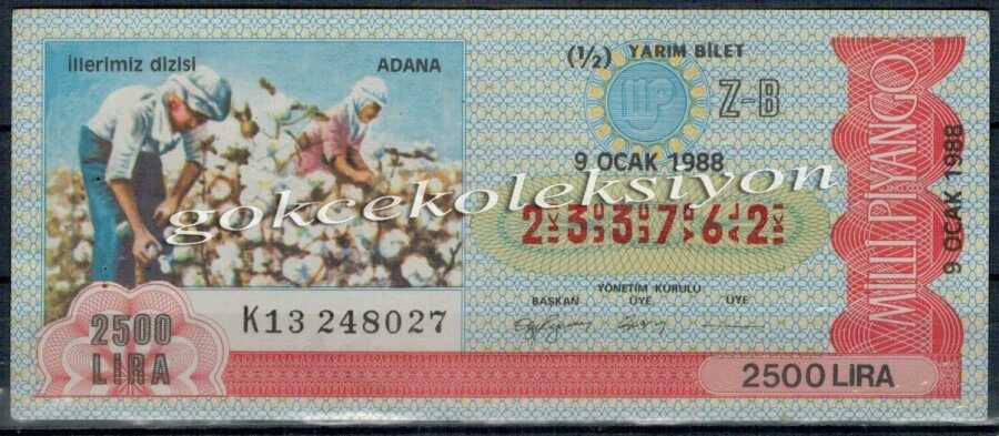 9 Ocak 1988 Piyango Bileti Yarım Bilet PYB1539